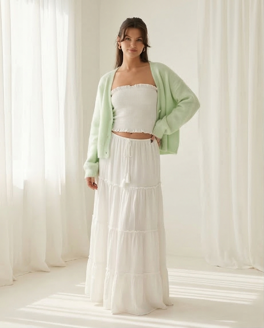 Der Rock hat die selben Farben wie das Bandeau Top.